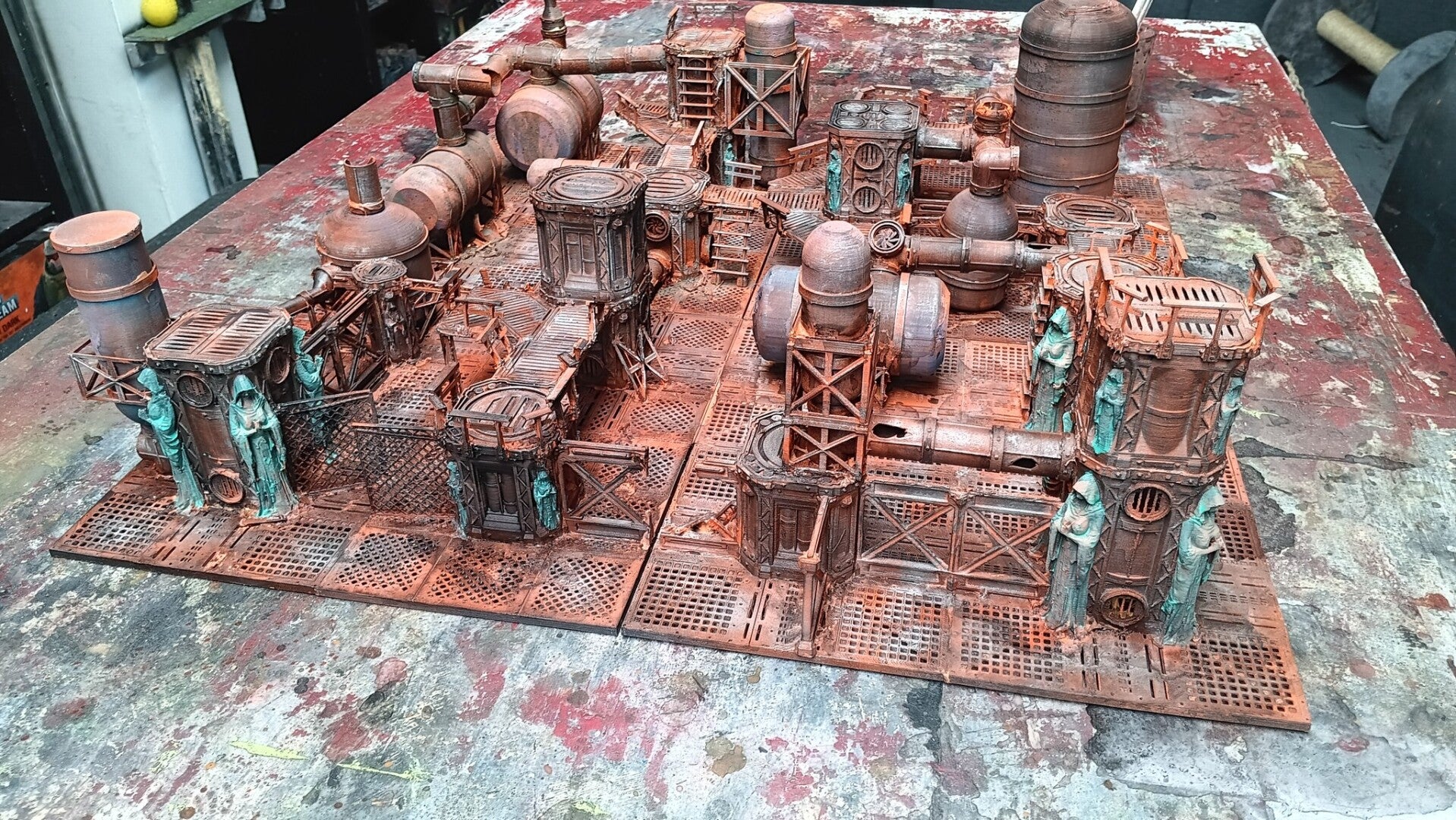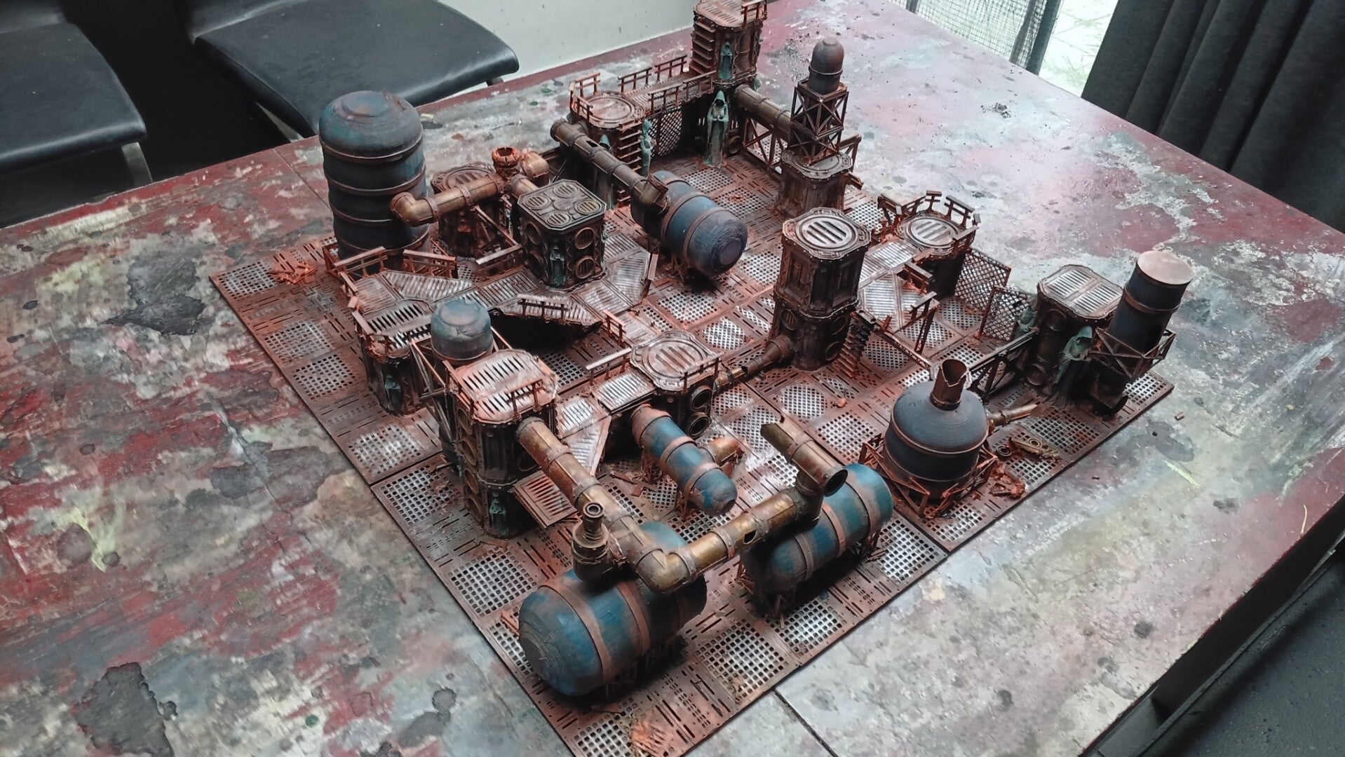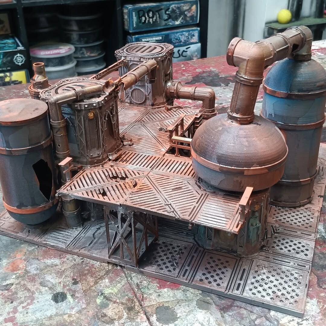 This alternative terrain set lets you build your industrial themed playground, designed for skirmish games, like necromunda and sort.
