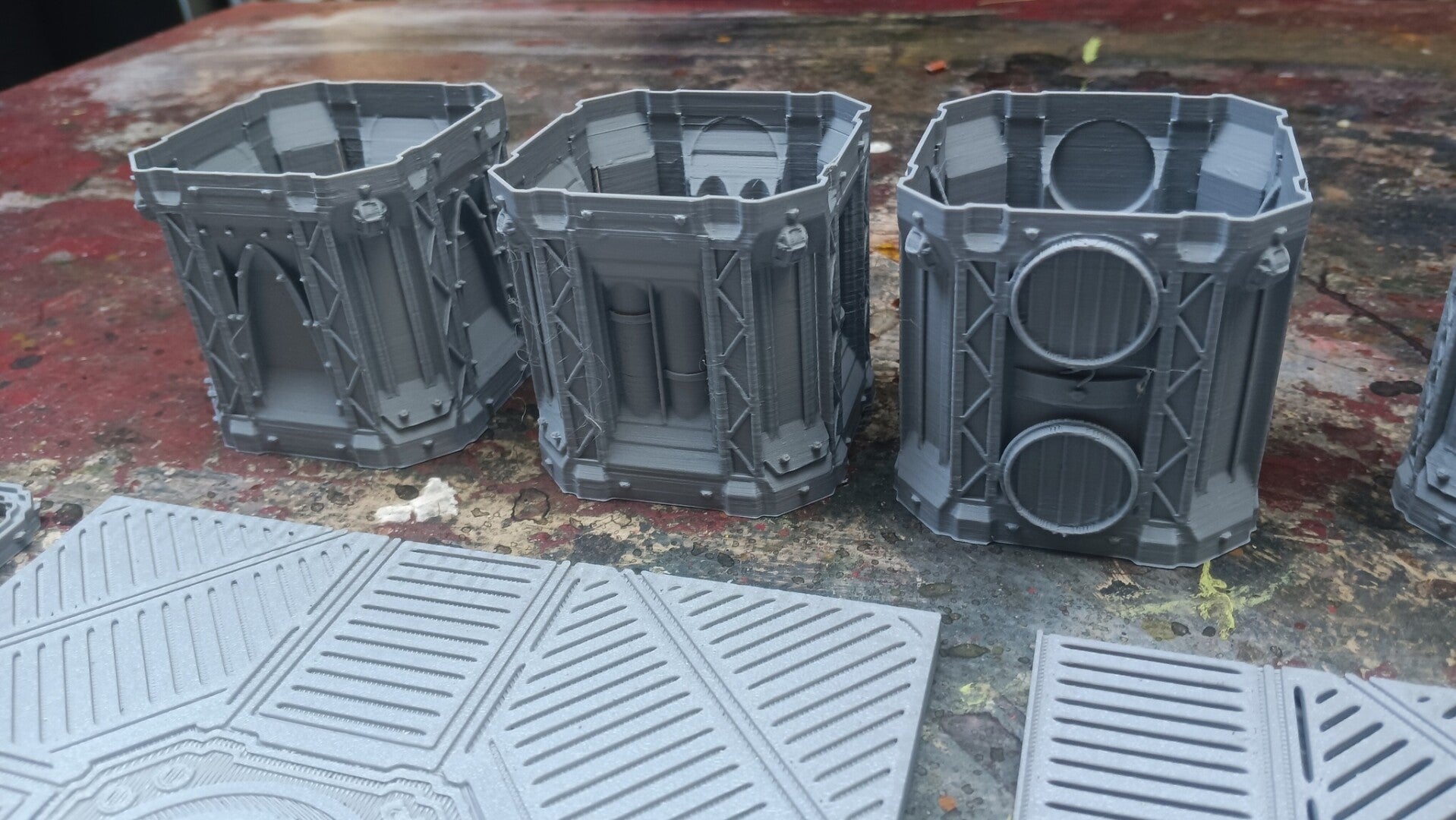 This time a simple and fast to print industrial grimdark terrain set wish requires glue to assemble.