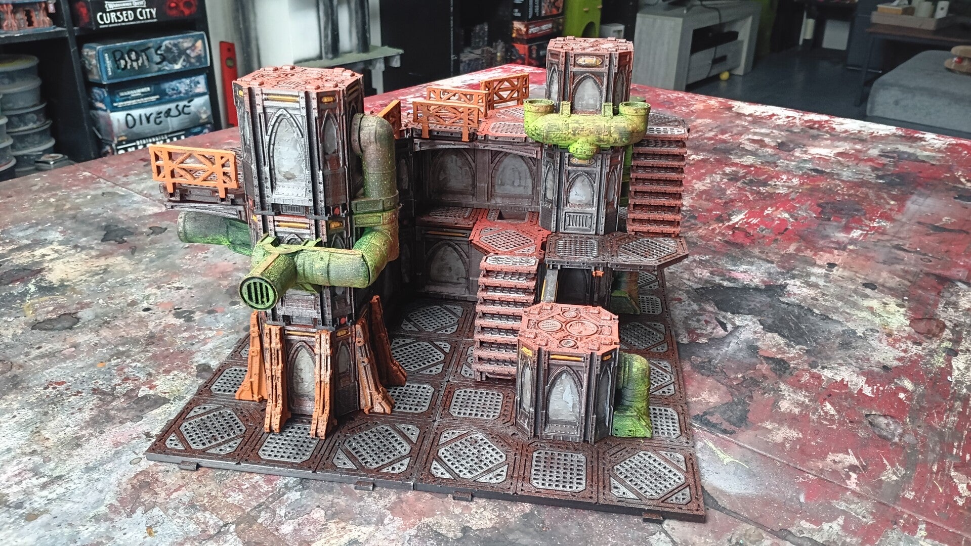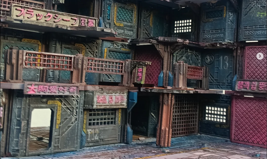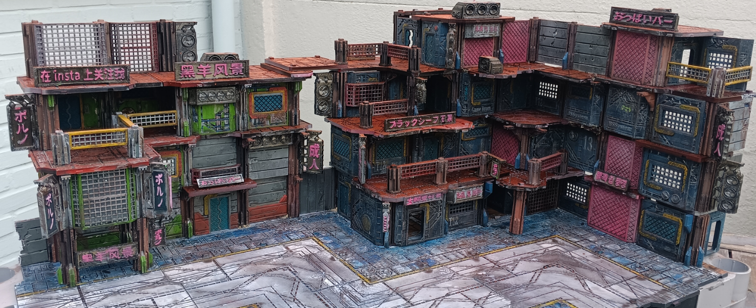 Your stand alone buildings or even an entire cyberpunk city tile game board.