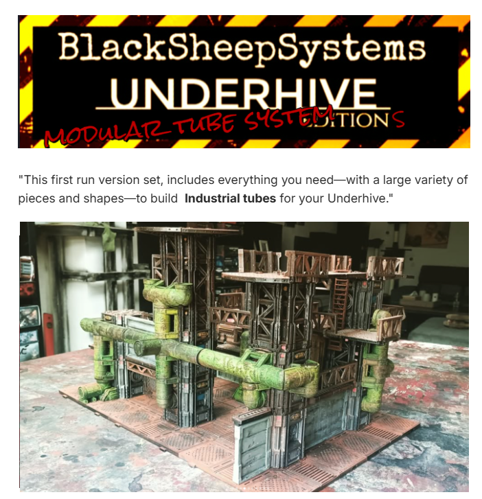 It's the first BlackSheepSystems edition, to be released for building or expanding your Underhive.